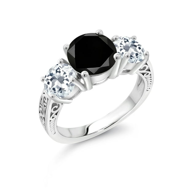 Gem Stone King 4 00 Ct Round Black Diamond White Topaz 925 Sterling Silver 3 Stone Ring Walmart Com Walmart Com Wedding Band Tiffany Co Wedding Rings