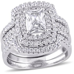 Brilliance Fine Jewelry Sterling Silver Simulated Diamond Bridal Set Ring Walmart Com Walmart Com Vintage Wedding Rings Pinterest