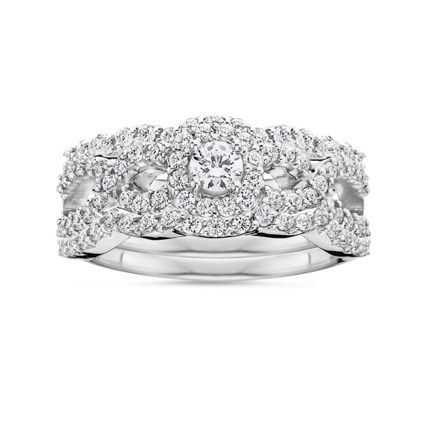 Pompeii3 1 10ct Diamond Bridal Engagement Ring Set 10k White Gold Walmart Com Walmart Com Vintage Pearl Wedding Rings