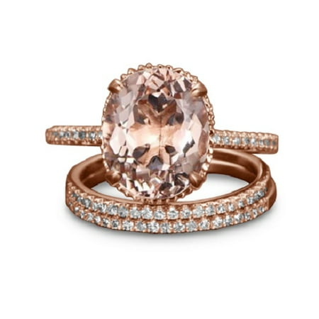Jeenmata 2 Carat Morganite And Diamond Trio Ring Set In 10k Rose Gold With One Engagement Ring And 2 Wedding Bands Walmart Com Catalogue Sterns Wedding Rings For Men