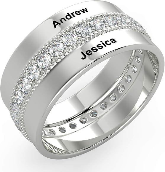 Amazon Com Mabella His Hers 3 Pcs Stainless Steel Matching Band Women Heart Cut Sterling Silver Wedding Engagement Ring Set Women S Size 5 Men S Size 9 Clothing Vera Wang Wedding Rings Love Collection