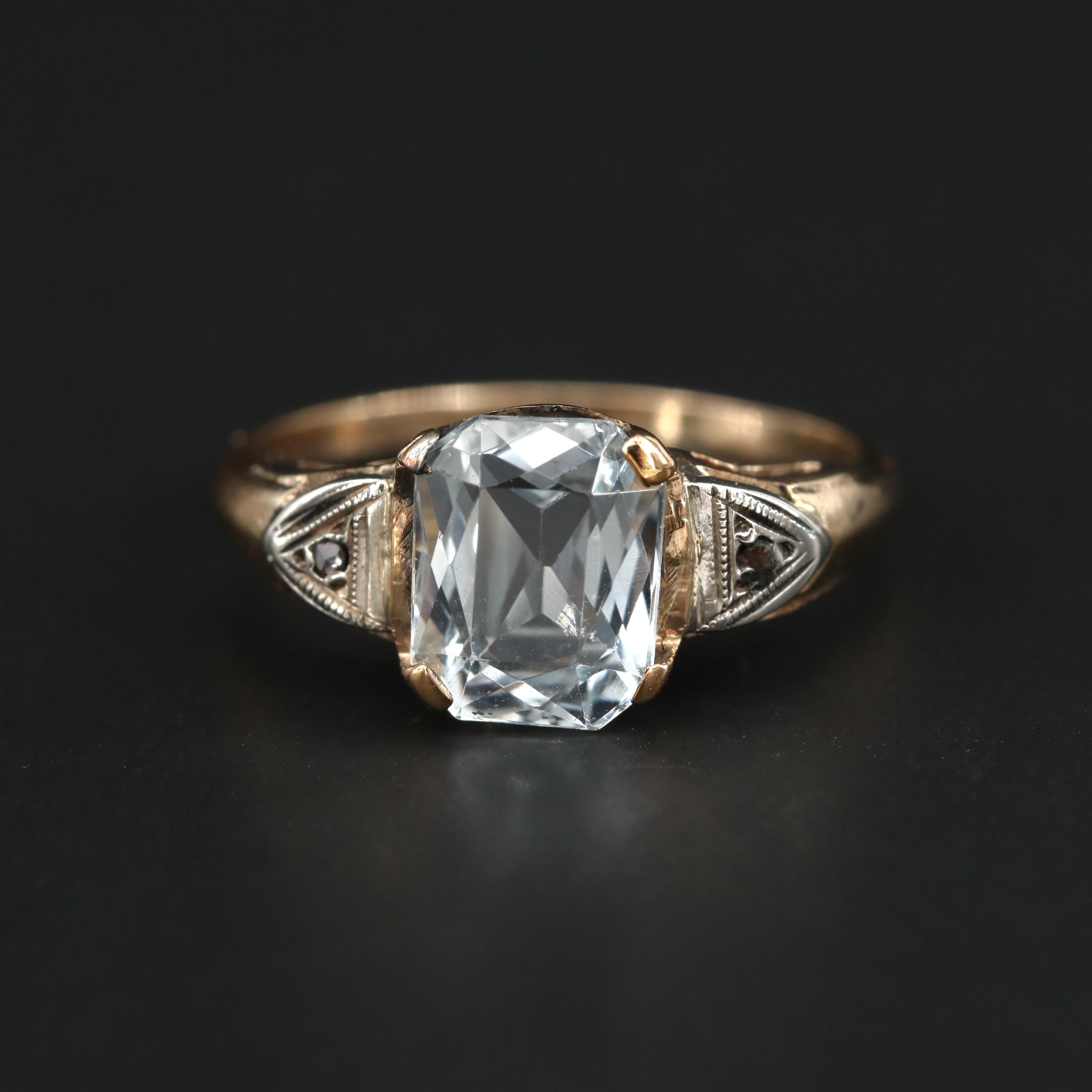 Art Deco Stern Stern 10k Rose Gold Aquamarine And Diamond Ring Ebth Mens Celtic Wedding Rings Uk