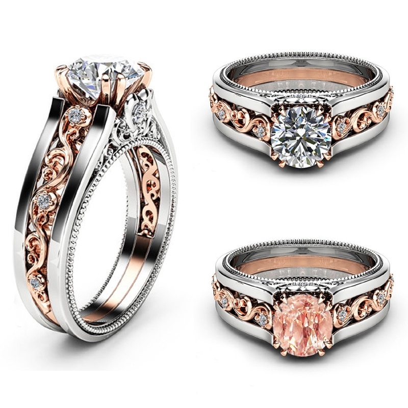 Vintage Champagne Diamond Rose Gold Filled 925 Sterling Silver Wedding Ring Shopee Malaysia Mens Wedding Ring Finger Uk