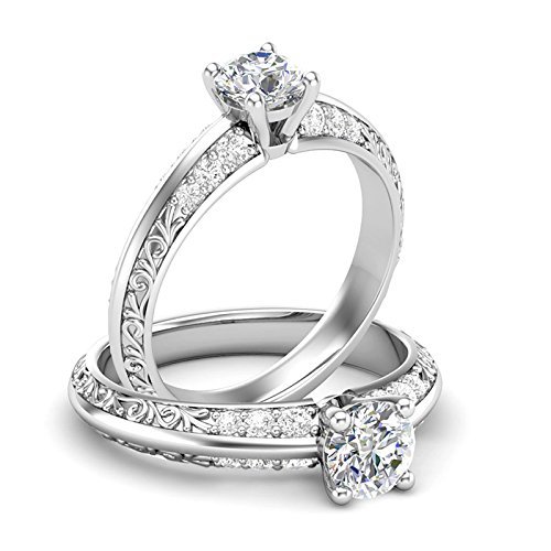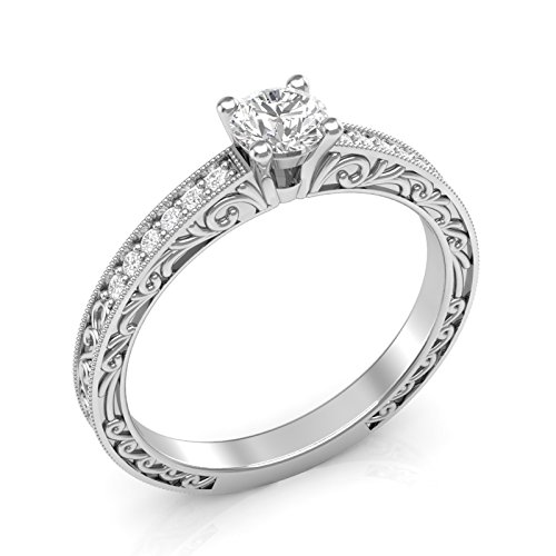 Amazon Com 14k White Gold Vintage Engagement Ring Art Deco Milgrain Filigree Ring Antique Ring Forever One Colorless Moissanite Center Ring For Her Handmade Wedding Rings Under 500 Dollars