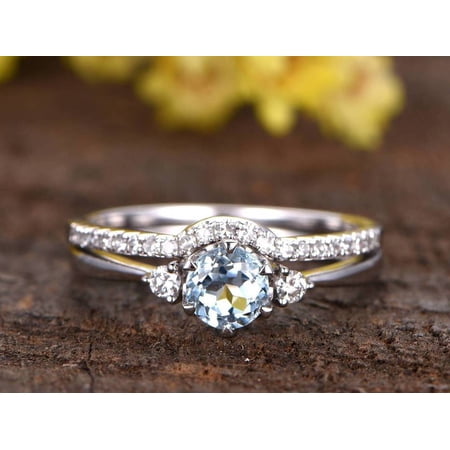 Jeenmata Three Stone 1 50 Carat Round Cut Aquamarine And Diamond Bridal Ring Set In White Gold Walmart Com Vintage Wedding Rings Denver