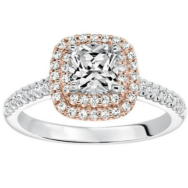 Jeenmata 2 Carat Cushion Cut Moissanite And Diamond Double Halo Engagement Ring In 10k White Gold Walmart Com Walmart Com Art Deco Vintage Wedding Rings 1940