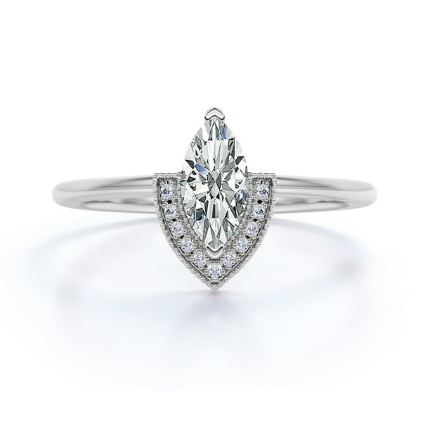 Jeenmata 0 63 Ct Marquise Diamond Ring Milgrain Engagement Semi Halo Wedding Ring 10k White Gold Walmart Com Walmart Com Art Deco Vintage Wedding Rings 1940