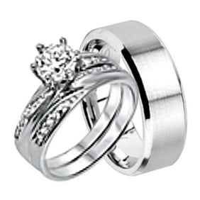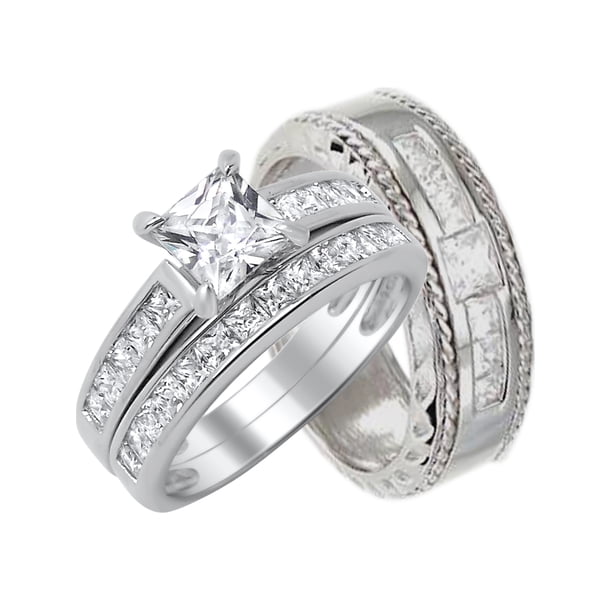 Product title wedding rings set for him and her stainless steel cz. Buy products such as 2 carat princess wedding ring set bridal set wedding trio set engagement ring art deco ring promise ring sterling silver at walmart and save. Shop for wedding ring sets in the wedding ring shop.