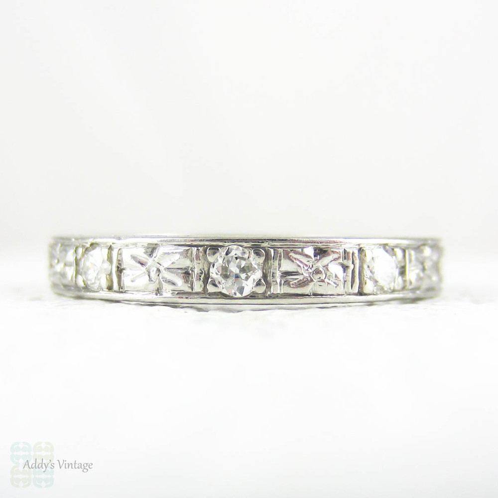 Art Deco Engraved Platinum Eternity Ring Hand Engraved Flower Blossoms Diamond Wedding Band Circa 1920s Size R Us 8 75 Addy S Vintage Victorian Vintage Wedding Rings