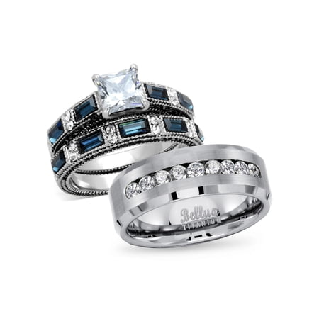 Bellux Style His Hers Wedding Ring Sets Women S Stainless Steel Vintage Ring Set Men S Titanimum Wedding Band Women S Size 05 Men S Size 10 Walmart Com Wedding Rings In The Uk