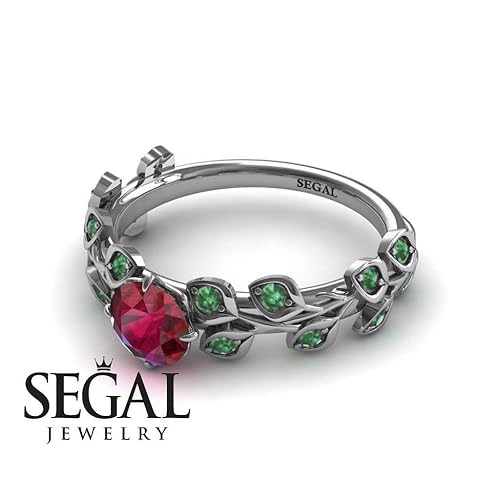 Amazon Com Unique Engagement Ring 14k White Gold Leaves And Branches Vintage Ruby With Green Emerald Sydney Handmade Unique Wedding Rings Cheap